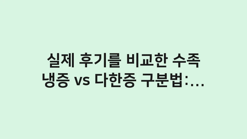 수족냉증 다한증 구분법을 실제 후기 데이터와 결합하여 상세히 분석합니다. 손발이 차가우면서 땀이 나는 모순적인 상황의 원인을 파악하고, 단순 혈액순환 문제인지 자율신경계의 오작동인지 명확한 진단 기준과 함께 맞춤형 관리 전략을 확인하세요. … 더 읽기.