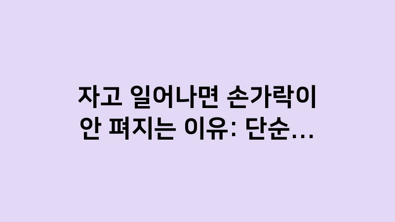 자고 일어나면 손가락이 안 펴지는 증상의 원인을 의학적 데이터와 실제 사례를 통해 분석했습니다. 단순 부종과 류마티스 조조강직을 구분하는 핵심 포인트와 상황별 해결책을 3,500자 분량의 심층 가이드로 확인하여 손가락 건강을 지키세요. … 더 읽기.
