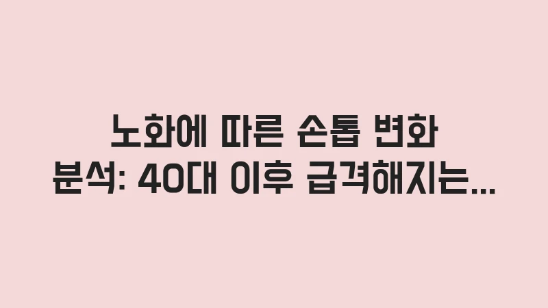 손톱 세로줄 예방 노화 관리를 통해 40대 이후 급격해지는 손톱 변화를 막는 법을 담았습니다. 수분 관리, 올바른 트리밍, 영양 공급 루틴으로 젊고 건강한 손톱을 유지하는 비결을 확인하세요. … 더 읽기.