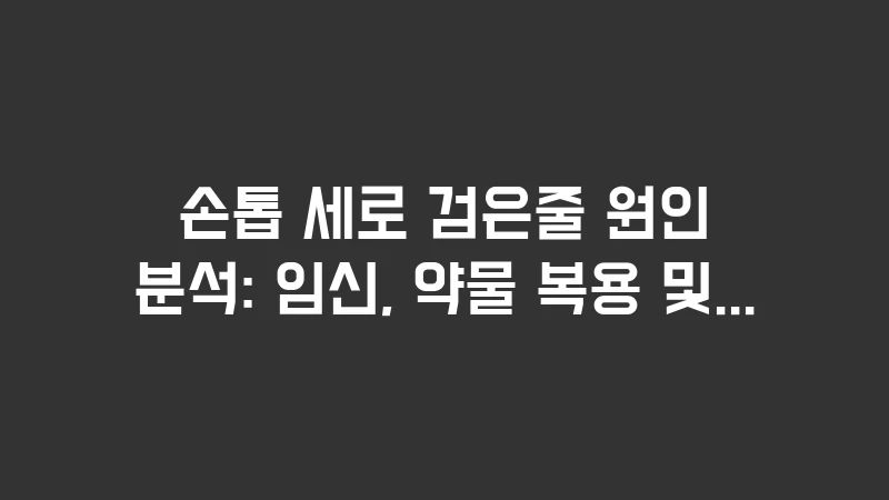 손톱 세로 검은줄 원인 임신, 약물 복용, 외상 후 색소 침착 등 다양한 비암성 요인을 분석했습니다. 흑색종에 대한 공포를 덜어줄 수 있는 과학적 사례와 일상 속 원인들을 확인하세요. … 더 읽기.