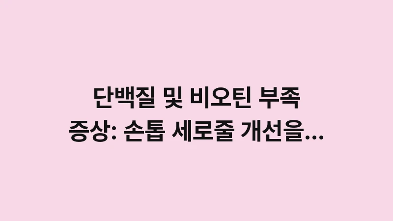 손톱 세로줄 영양 결핍 증상을 해결하기 위한 단백질과 비오틴 섭취 가이드입니다. 얇고 갈라지는 손톱을 매끈하게 되돌리는 필수 영양소와 식단 구성법을 전문가 분석으로 정리했습니다. … 더 읽기.