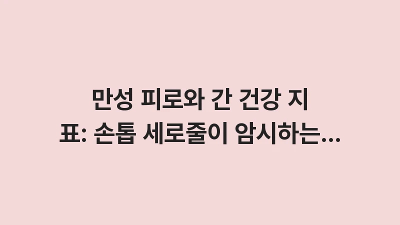 손톱 세로줄 간 건강 및 신체 대사 경고 신호를 분석했습니다. 만성 피로와 함께 나타나는 손톱의 변화가 암시하는 간 기능 저하와 해독 작용의 연관성을 전문가의 시각으로 확인하세요. … 더 읽기.