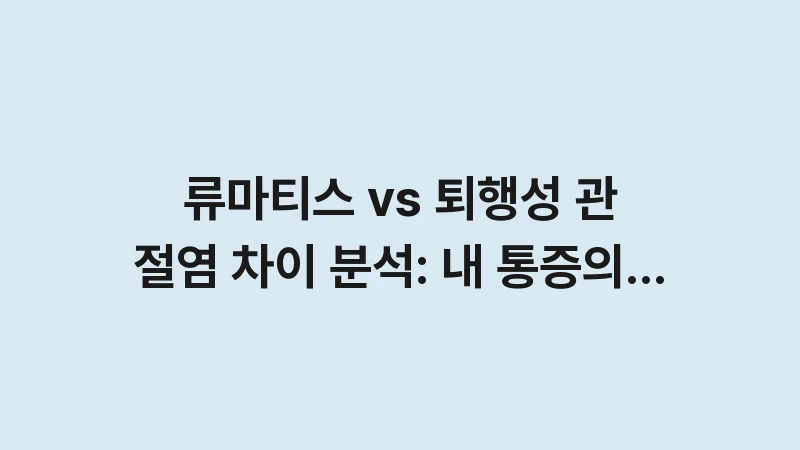 류마티스 퇴행성 관절염 차이를 정확히 알고 계신가요? 통증 위치, 강직 시간, 전신 증상 등 전문가가 분석한 5가지 핵심 비교 지표를 통해 내 통증의 진짜 원인을 완벽하게 판별해 드립니다. … 더 읽기.