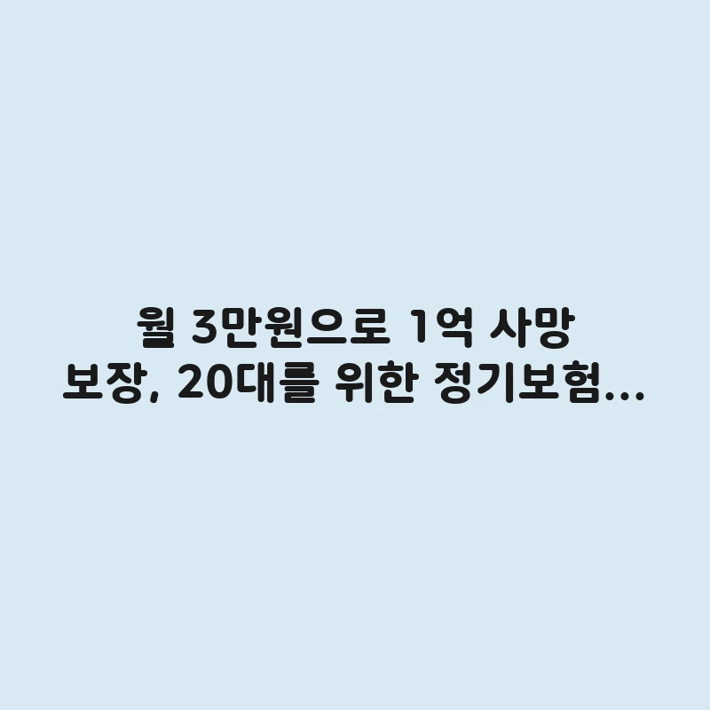 20대를 위한 가장 현실적인 정기보험 가입 가이드. 월 3만 원이라는 합리적인 예산으로 1억 원 사망 보장을 만드는 구체적인 설계 방법과 보험료를 낮추는 꿀팁까지 모두 공개합니다.