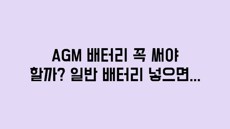 AGM 배터리 일반 배터리의 선택 기준을 무시했을 때, 실제 운전자가 겪은 낭패 사례를 분석하여 현명한 선택의 중요성을 강조합니다.
