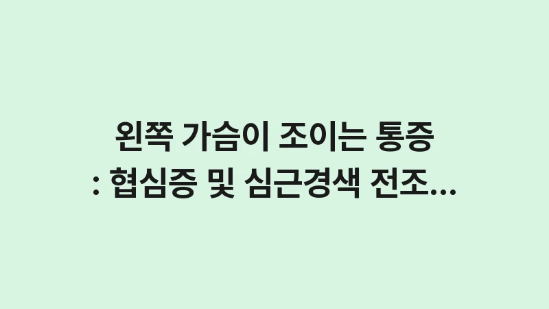 왼쪽 가슴이 조이는 통증은 절대 무시해서는 안 될 생명의 신호입니다. 협심증과 심근경색은 한순간에 소중한 일상을 앗아갈 수 있지만, 전조 증상을 명확히 알고 골든타임 내에 대처한다면 충분히 극복할 수 있는 질환이기도 합니다. 자신의 몸이 보내는 작은 경고에 귀를 기울이십시오. 오늘 확인한 대응 수칙이 여러분과 소중한 가족을 지키는 가장 강력한 방패가 될 것입니다.