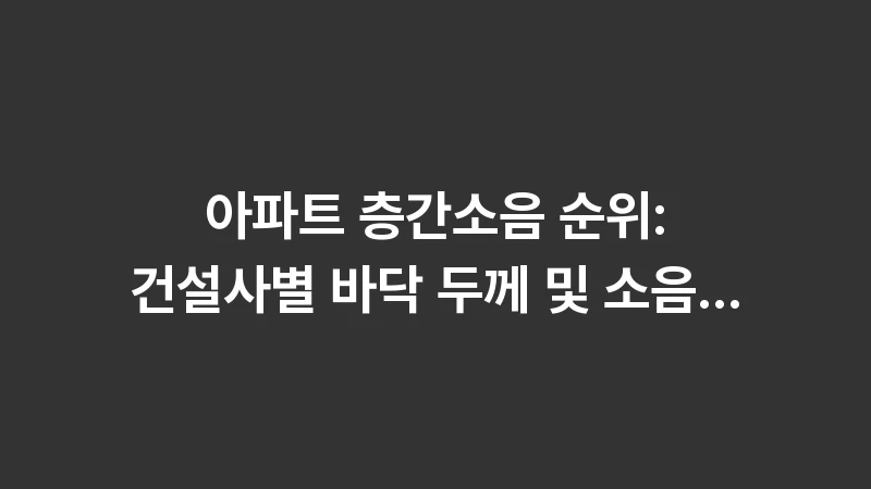 아파트 층간소음 순위: 건설사별 바닥 두께 및 소음 등급 확인법 (이사 전 필수 체크)