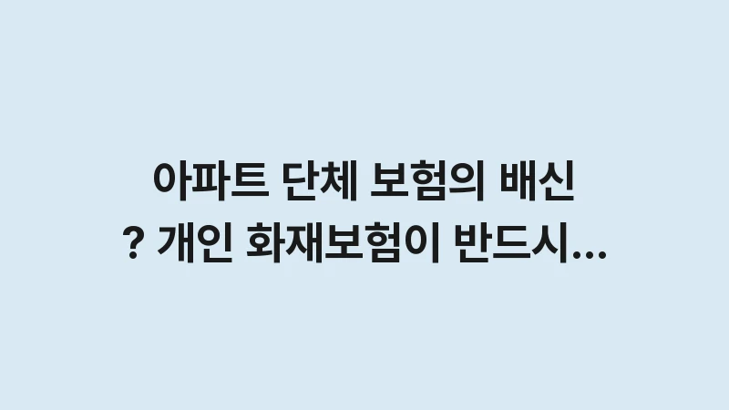 아파트 단체 보험의 배신? 개인 화재보험이 반드시 필요한 진짜 이유