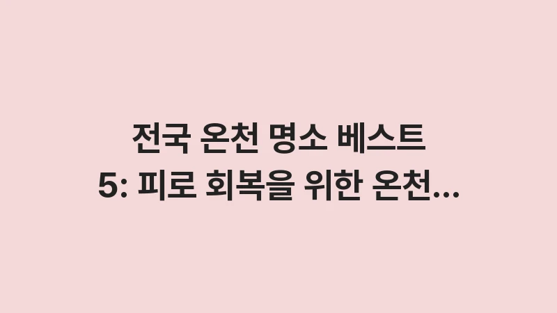 대한민국 온천 여행지 순위 TOP 5 및 특징 분석