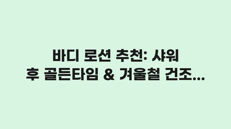 겨울철 바디 피부 관리는 ‘타이밍’과 ‘성분’ 싸움입니다. 오늘부터 샤워 후 욕실 문을 열고 나오기 전에 보습제를 바르는 습관을 들여보세요. 3분의 투자가 밤새 당신을 괴롭히던 가려움증을 잠재우고, 매끄러운 피부를 선물해 줄 것입니다.