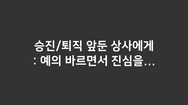 🏠 승진/퇴직 상사 덕담 핵심 관리 가이드