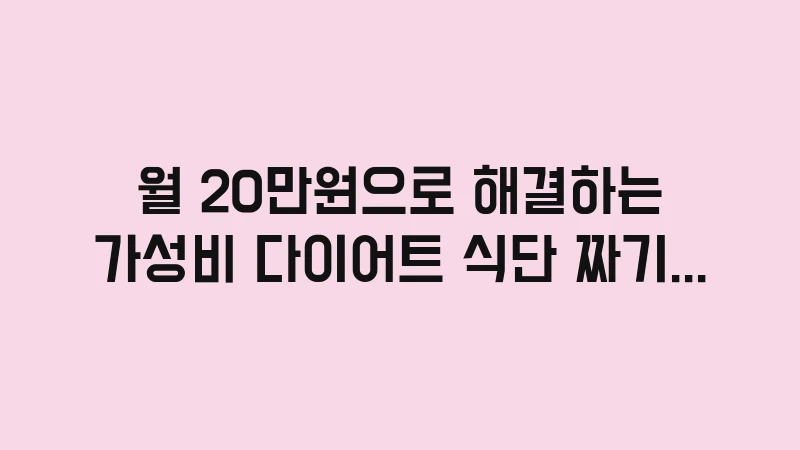 월 20만원으로 해결하는 가성비 다이어트 식단 짜기 노하우