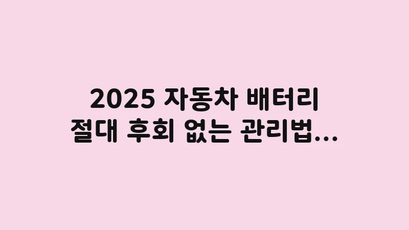 시동을 걸었는데 ‘틱틱’ 소리만 나거나, 계기판에 경고등이 들어오면 심장이 내려앉습니다. 특히 추운 겨울이나 장마철, 오랜만에 차를 몰 때 이런 상황을 겪는다면, 하루 일정이 꼬이는 것은 물론 예상치 못한 지출까지 발생합니다. 자동차 배터리 관리는 운전자라면 반드시 알아야 할 ‘자동차 응급처치 상식’이자 ‘경제 운전의 기본’입니다. 제가 지난 10년간 다양한 차종을 운행하며 수집한 데이터와 전문가들의 조언을 바탕으로, 2025년 기준 가장 효율적이고 후회 없는 배터리 관리 노하우를 A부터 Z까지 모두 정리했습니다. 이 글만 끝까지 읽으시면, 더 이상 추가 검색으로 시간 낭비할 일 없이 언제 어디서든 자신 있게 차량 문제를 해결할 수 있을 것입니다.