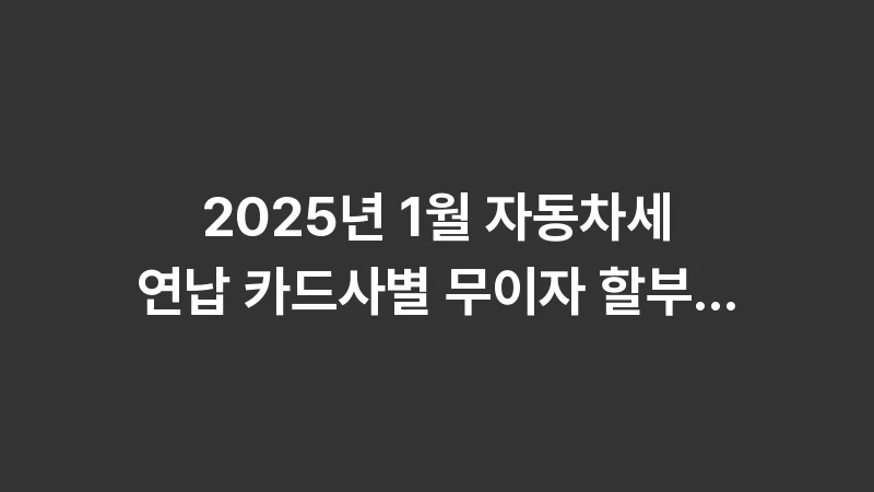 저는 이 글을 통해 2025년 1월에 주요 카드사들이 제공하는 무이자 할부 기간, 캐시백 비율, 포인트 적립 기준을 명확히 비교 분석하여, 당신이 연납 고지서를 받고 어떤 카드로 결제해야 가장 합리적인지 단번에 판단할 수 있도록 돕겠습니다. 특히 ‘무이자 할부 시 포인트 적립 제외’와 같은 숨겨진 함정을 피하는 노하우를 공개합니다. 가장 스마트하게 세금을 납부하는 방법을 지금 확인하십시오.