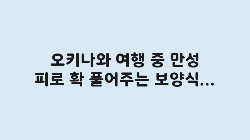오키나와 만성 피로 보양식 맛집 BEST 3를 공개합니다. 장수 비결이 담긴 산큐 나베, 흑돼지, 그리고 해양 식재료를 활용한 보양식을 소개합니다. 여행 중 만성 피로를 확 풀어주는 현지식으로 에너지를 충전하고 오키나와 치유 여행의 활력을 되찾으세요. … 더 읽기.