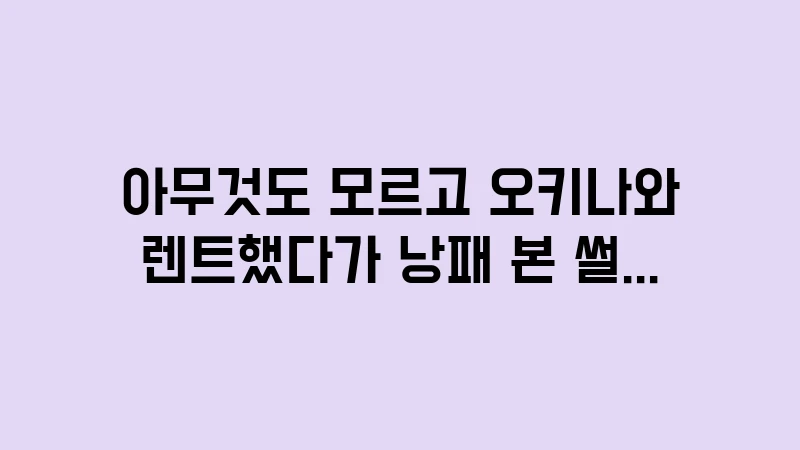 오키나와 택시 투어, 무릎 아프다고 후회하기 전에 전용 택시로 편하게 다니는 비법을 알려드립니다. 8시간 일일 투어 예상 비용과 한국어 예약 시 주의사항 3가지, 렌터카와의 비교 분석까지 상세히 정리했습니다. 편안한 오키나와 여행을 지금 계획하세요. … 더 읽기.
