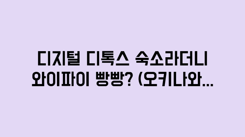오키나와 디지털 디톡스 숙소 찾는 비법입니다. 와이파이가 빵빵 터지는 곳을 피하고, 멜라토닌 생성에 최적화된 빛 공해 없는 진짜 시골 숙소 찾는 팁을 공개합니다. 스마트폰 없이 오키나와에서 멘탈 회복하는 완벽한 치유 여행을 시작하세요. … 더 읽기.