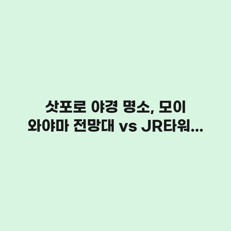 삿포로 야경 명소, 모이와야마 전망대 vs JR타워 전망대 장단점 비교 2025-12-262025-10-28 작성자: admin 삿포로 야경 명소를 이야기할 때, 여행자들이 가장 먼저 고민하는 것은 모이와야마(藻岩山) 전망대와 JR타워 전망대(T38) 중 어디를 가야 할지입니다. 두 곳 모두 삿포로 시내를 조망할 수… … 더 읽기 … 더 읽기.