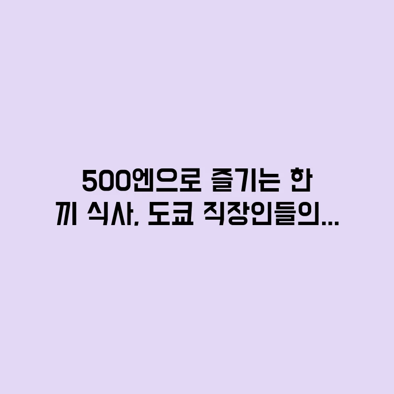 500엔으로 즐기는 한 끼 식사, 도쿄 직장인들의 점심 맛집은 어디일까? 2025-10-30 작성자: admin 도쿄 500엔 점심, 정말 가능할까요? 비싼 도쿄 물가 속에서 현지 직장인들이 매일같이 찾는, 동전 하나로 든든한 한 끼를 해결할 수 있는 ‘원코인 런치’ 맛집 유형과… … 더 읽기 … 더 읽기.