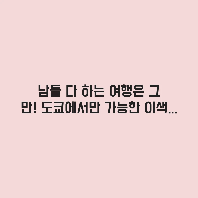 남들 다 하는 여행은 그만! 도쿄에서만 가능한 이색 체험 TOP 5 2025-10-30 작성자: admin 도쿄 이색 체험을 찾고 계신가요? 도쿄 타워, 아사쿠사 같은 뻔한 관광지를 넘어 당신의 여행을 평생의 추억으로 만들어 줄 팀랩 뮤지엄부터 스모 경기 관람, 쿠킹 클래스까지,… … 더 읽기 … 더 읽기.