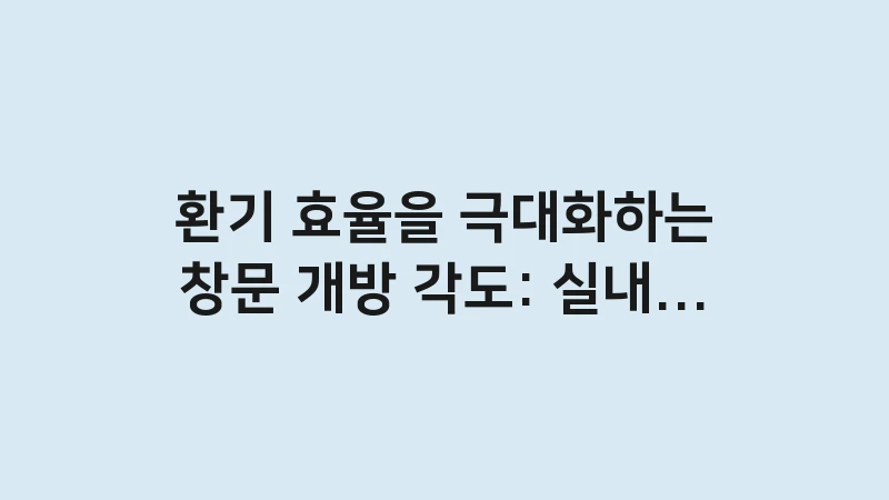 환기 효율을 극대화하는 창문 개방 각도와 실내 미세먼지 농도 변화 데이터를 확인하세요! 맞통풍의 과학적 원리와 상황별 최적의 각도를 전문가가 상세히 분석해 드립니다. … 더 읽기.
