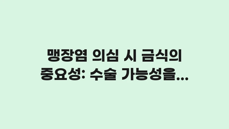 맹장염 의심 시 금식의 중요성을 의학적 근거와 함께 상세히 설명합니다. 물 한 모금이 마취 사고로 이어질 수 있는 이유, 적정 금식 시간, 그리고 응급 수술 시 환자가 지켜야 할 식단 수칙을 2026년 안전 가이드로 안내합니다. … 더 읽기.