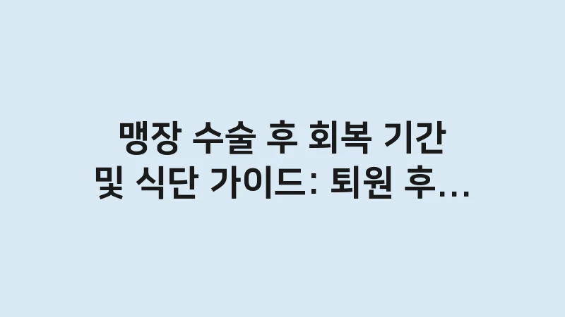 맹장 수술 후 회복 기간 및 단계별 식단 가이드를 상세히 안내합니다. 퇴원 후 통증 관리, 운동 시기, 상처 관리법과 함께 빠른 일상 복귀를 돕는 필수 영양소 정보를 2026년 최신 의료 지침에 따라 정리했습니다. … 더 읽기.