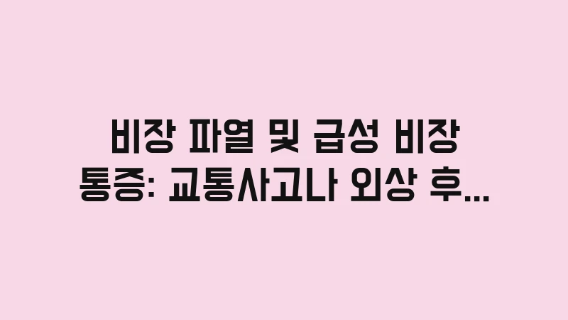 비장 파열 및 급성 비장 통증 가이드를 통해 외상 후 발생하는 왼쪽 상복부 통증의 위험성을 경고합니다. 교통사고나 낙상 후 나타나는 복강 내 출혈 신호와 응급 처치법을 전문가의 시선으로 상세히 정리했습니다. … 더 읽기.