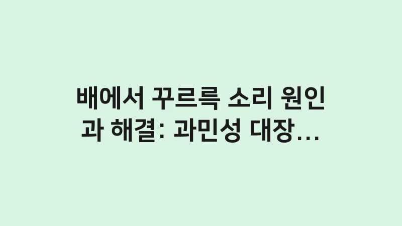 배에서 꾸르륵 소리 원인과 해결 방법을 찾고 계신가요? 과민성 대장 증후군부터 복부 팽만까지, 장내 가스를 즉각적으로 제거하고 장 건강을 회복하는 과학적인 식단과 관리법을 2026년 최신 데이터로 완벽 정리했습니다. … 더 읽기.