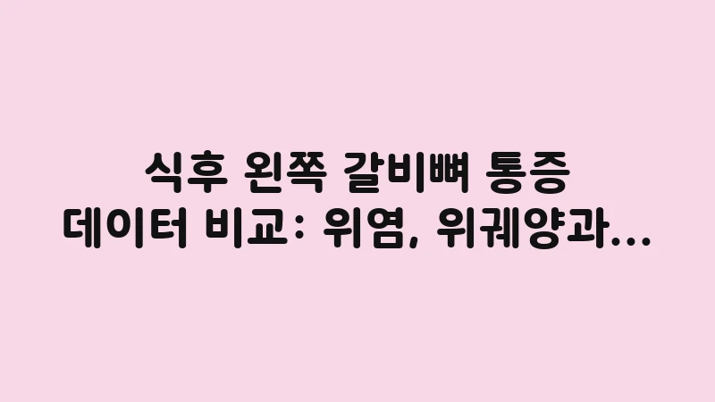 식후 왼쪽 갈비뼈 통증 데이터 비교를 통해 단순 위염과 췌장 질환을 완벽히 구분합니다. 섭취 음식에 따른 통증 반응과 증상 지속 시간, 그리고 소화기 질환별 특징적인 신호를 분석하여 올바른 대처법을 제시합니다. … 더 읽기.