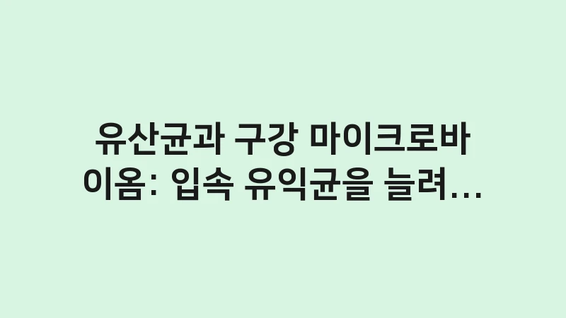 유산균과 구강 마이크로바이옴의 관계를 분석하여 입속 유익균을 늘려 백태와 구취를 억제하는 혁신적인 전략을 제시합니다. 장 건강뿐만 아니라 입안 생태계를 결정짓는 마이크로바이옴 데이터에 따르면, 특정 유산균 섭취는 유해균 부착을 80% 이상 차단합니다. 15년 차 건강 분석가가 알려주는 구강 전용 유산균 선택법과 관리 비법으로 깨끗한 혀를 유지하세요. … 더 읽기.