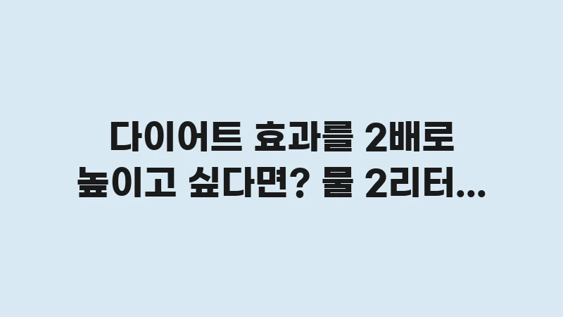 만약 다이어트 효과를 2배로 높이고 싶다면? 물 2리터 마시기의 기적 2025-11-07 작성자: admin 물 2리터 마시기가 다이어트에 미치는 놀라운 효과를 과학적으로 증명합니다. 신진대사 촉진, 식욕 억제, 노폐물 배출 등 물이 체중 감량에 미치는 영향과 가장 효과적으로 마시는 방법까지… … 더 읽기 … 더 읽기.