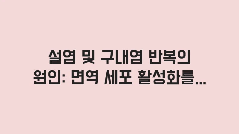 설염 및 구내염 반복의 원인을 면역 세포 활성화 데이터와 결합하여 심층 분석합니다. 단순한 피로를 넘어선 장내 환경 불균형, 미량 영양소 결핍, 자가 면역 반응의 상관관계를 밝힙니다. 10년 차 건강 분석가가 제안하는 염증 재발 방지 전략과 면역 체계 강화 노하우를 통해 반복되는 입안 고통에서 벗어나는 근본적인 해결책을 확인하세요. … 더 읽기.