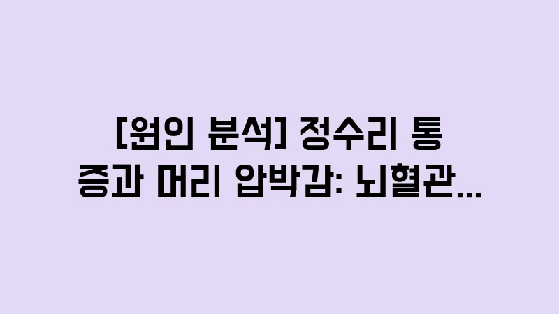 정수리 통증과 머리 압박감을 유발하는 원인을 뇌혈관 건강 및 고혈압 연관성을 중심으로 분석했습니다. 머리 꼭대기가 무겁게 눌리는 통증의 정체와 뇌 피로를 해소하는 실질적인 해결책을 통해 위험 신호를 감지하고 건강한 뇌 컨디션을 회복하는 가이드를 확인하세요. … 더 읽기.