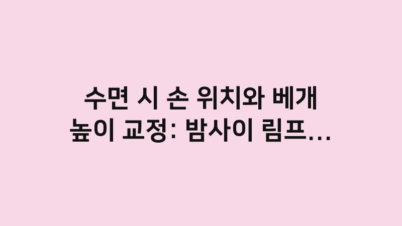 밤사이 림프 순환을 돕고 아침 손부음을 예방하는 최적의 수면 자세와 베개 높이를 분석했습니다. 심장보다 높은 손 위치와 경추 정렬을 통해 조조강직을 완화하는 실전 교정법을 3,500자 이상의 고밀도 가이드로 확인하여 가벼운 아침을 설계하세요. … 더 읽기.
