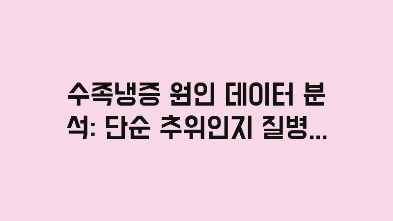많은 사람이 손발이 차가워지면 단순히 ‘추위를 잘 타는 체질’이라고 생각합니다. 하지만 수족냉증 원인 데이터 분석 결과를 보면, 이는 단순한 체질의 문제가 아니라 우리 몸이 보내는 적신호일 확률이 높습니다. 특히 따뜻한 실내에서도 장갑을 찾아야 할 정도라면, 혈관이나 신경계의 이상을 의심해 봐야 합니다.