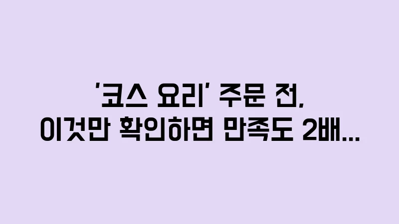 ‘코스 요리’ 주문 전, 이것만 확인하면 만족도 2배 높아진다