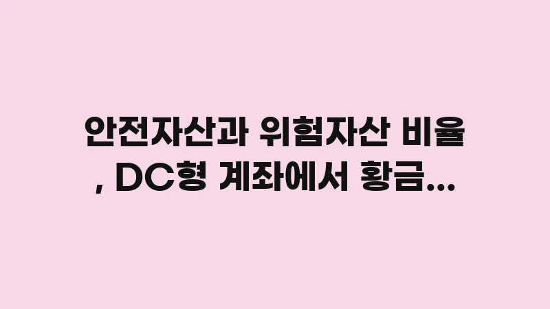 제가 분석한 수많은 장기 투자 데이터와 재무 이론을 바탕으로, 당신의 현재 나이와 투자 성향에 따라 DC형 계좌 안전자산과 위험자산 비율의 황금 비율은 몇 대 몇인지 명쾌하게 알려드리겠습니다. 감정적인 매매를 피하고, 오직 원칙에 기반한 성공적인 자산 배분 전략을 시작할 수 있습니다.