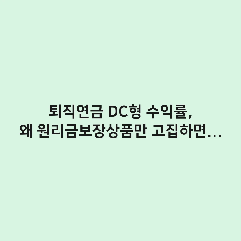 오늘, 저조한 퇴직연금 DC형 수익률의 주범인 ‘원리금보장상품’만 고집하는 것이 왜 장기적으로 손해인지, 그 치명적인 이유를 낱낱이 파헤쳐 드립니다.