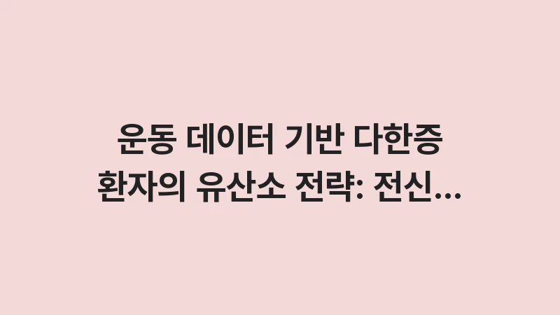 2. 다한증 환자에게 최적화된 저충격·고효율 유산소 루틴