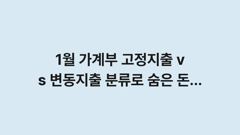 🔍 데이터 발견: 변동지출(식비 등)을 매달 5만원 줄이려면 매일의 강력한 의지가 필요하지만, 월 5만원짜리 불필요한 보험 특약 하나를 해지하면 단 한 번의 전화로 1년 동안 60만원이 자동으로 절약됩니다. 노력 대비 효과(ROI)가 고정지출이 압도적으로 높습니다. 1월 가계부 고정지출 vs 변동지출 분류를 시작했다면, 반드시 고정지출 점검을 최우선으로 해야 월 30만원의 숨은 돈을 가장 빠르게 찾을 수 있습니다.