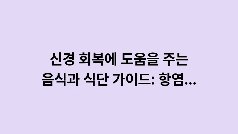 🏠 안면 신경 회복 식단 핵심 관리 가이드