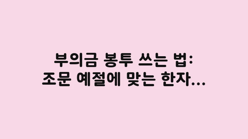 장례식장에 비치된 봉투에는 이미 한자가 인쇄되어 있습니다. 만약 직접 써야 하는데 한자가 너무 복잡하게 느껴진다면, 한글로 ‘부의’라고 써도 실례가 되지 않습니다. 오히려 한자를 잘못 써서 뜻이 왜곡되는 것보다 한글로 정성껏 적는 것이 현대 조문 예절에 더 부합합니다.