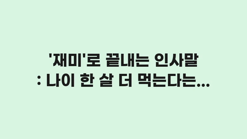 나이 한 살 더 먹는다는 뼈 있는 농담 문구는 친한 관계에서 연말연시를 유쾌하게 마무리하는 최고의 소통 방법입니다. 하지만 ‘3대 안전 원칙’을 철저히 지키고, 농담 끝에는 반드시 긍정적인 응원을 담아 진심을 전해야 합니다. 웃음과 감동을 동시에 선사하는 센스 있는 메시지로 새해를 맞이하시길 바랍니다.
