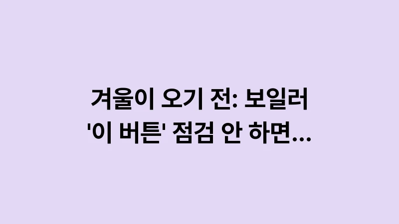 겨울이 오기 전: 보일러 ‘이 버튼’ 점검 안 하면 100% 가스비 폭탄 맞는다
