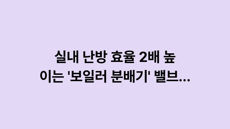 저는 10년 차 에너지 컨설턴트로서, 수많은 난방 불균형 문제를 해결해 본 경험을 바탕으로 보일러 분배기 밸브 조절의 최적의 순서와 원리를 알려드립니다. 밸브 조절은 난방이 잘 되는 방의 물길을 줄여 난방수가 안 되는 방으로 더 많이 흐르도록 유도하는 난방 균형의 핵심 기술입니다. 이 가이드를 통해 당신의 집 난방 효율을 2배 높이고, 균일하고 따뜻한 겨울을 보내시길 바랍니다.