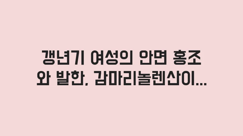 이 글에서는 감마리놀렌산 갱년기 증상 완화 효과, 특히 안면 홍조와 발한에 어떤 원리로 도움을 줄 수 있는지 그 과학적 근거와 섭취 방법을 집중적으로 분석합니다.