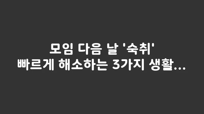 고지 문구: 본 글은 2025년 12월 기준으로 작성되었으며, 일반적인 정보를 바탕으로 합니다. 개인의 상황에 따라 결과가 다를 수 있으며, 중요한 의사결정(의학, 금융, 법률 등) 전에는 반드시 전문가와 상의하시기 바랍니다. 숙취 해소 방법은 개인의 건강 상태와 알코올 분해 능력에 따라 효과가 다를 수 있습니다.