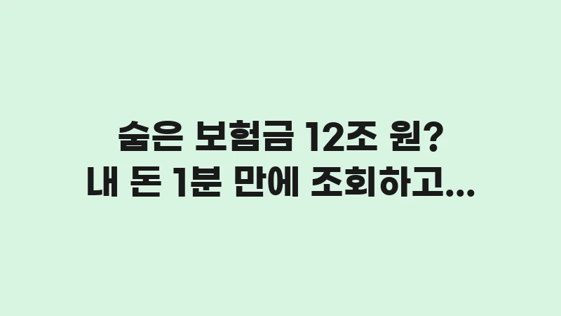 이 글은 숨은 보험금 12조 원을 1분 만에 조회하고 찾는 초간단 서비스인 금융감독원의 ‘내 보험 찾아줌’ 서비스를 완벽하게 활용하는 가이드입니다. 접속부터 조회, 그리고 실제 지급받기까지의 구체적인 절차를 단계별로 안내하겠습니다. 지금 바로 당신의 잠자고 있는 돈을 깨워 재정 건전성을 확보하세요.