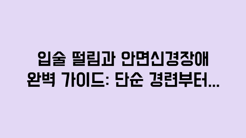 🏠 입술 떨림과 안면신경장애 핵심 관리 가이드